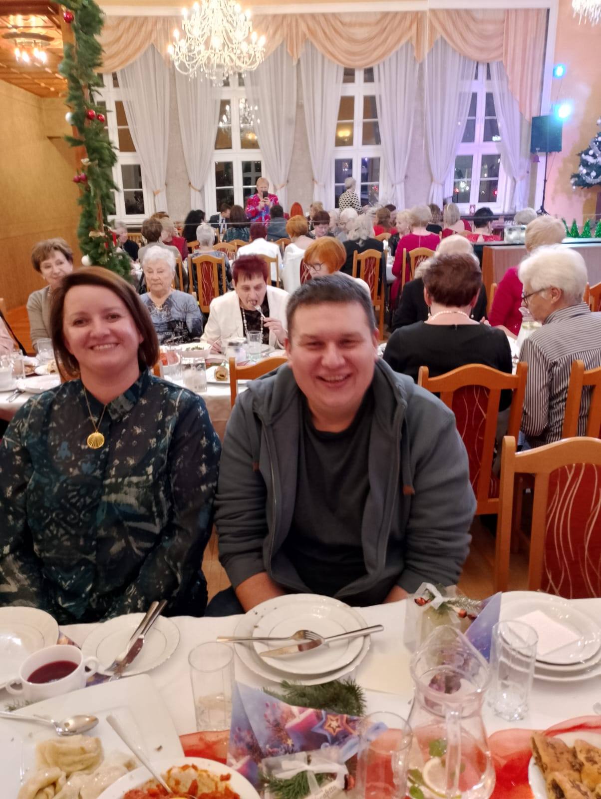 16 grudnia 2025 r. w Domu Kultury Kolejarza odbyła się uroczysta wigilia członków Stowarzyszenia Amazonek. Po złożeniu życzeń przez Panią Starostę Iwonę Wiśniewską, Dyrektora Wydziału Polityki Społecznej Sebastiana Lewkowicza oraz Skarbnika Miasta Łukasza Wilkosza, wspólnie odmówiono modlitwę wraz z księdzem Janem Uzdowskim.